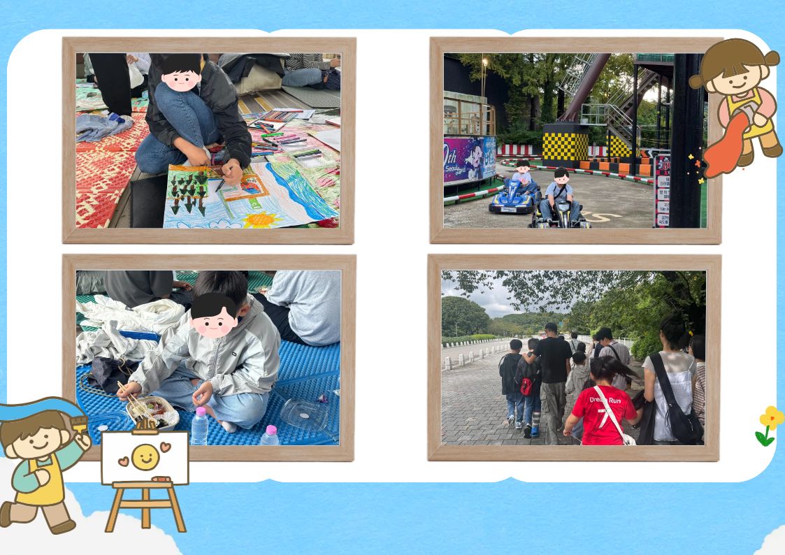 2025년 9월 20일 서울대공원에서 진행된 사생대회 참여하였습니다. 각자 주어진 주제를 가지고 멋지고 훌륭한 작품을 만들어 제출하였습니다. 대회 마친 이후에는 서울대공원에서 놀이기구 탑승하거나 동물들 구경하며 즐거운 시간도 보냈습니다.